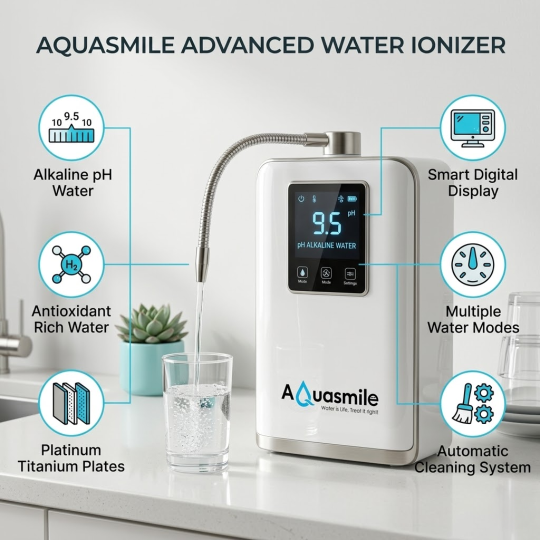 Advanced alkaline water ionizer that produces antioxidant-rich alkaline water to improve hydration and overall wellness.